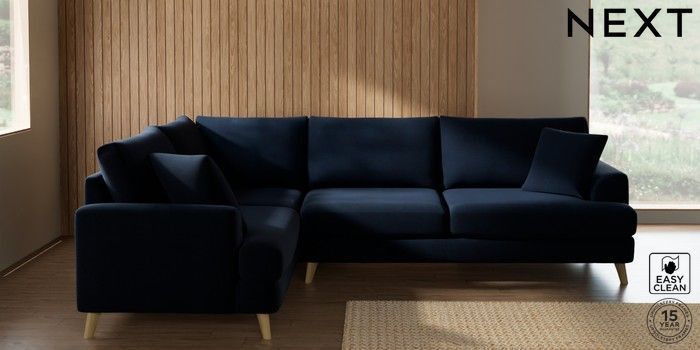 7.2.10 Parker Large Corner Sofa - Left Hand Fine Chenille Easy Clean Dark Navy Blue Low Retro Tapered - Light | Made Click here to use our website with more accessibility support, for example screen readers