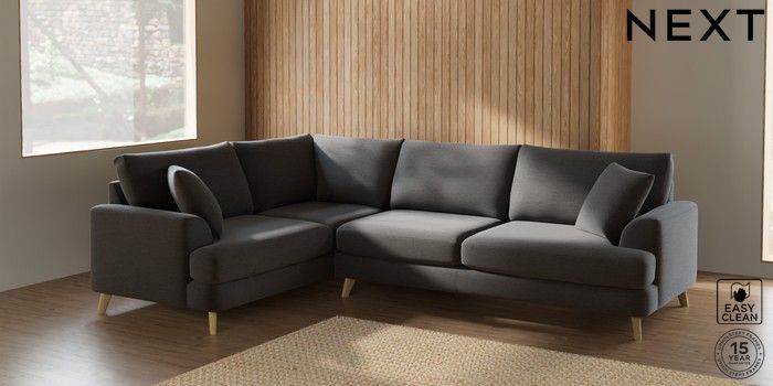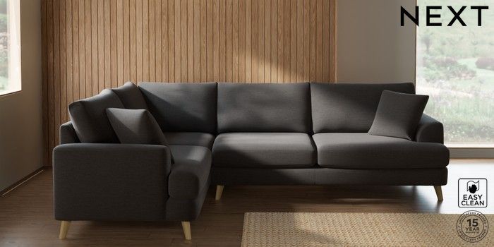 7.2.10 Parker Large Corner Sofa - Left Hand Fine Chenille Easy Clean Dark Smoke Grey Low Retro Tapered - Light | Made Click here to use our website with more accessibility support, for example screen readers