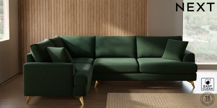 7.2.10 Parker Large Corner Sofa - Left Hand Fine Chenille Easy Clean Mid Khaki Green High Metal - Brass | Made Click here to use our website with more accessibility support, for example screen readers