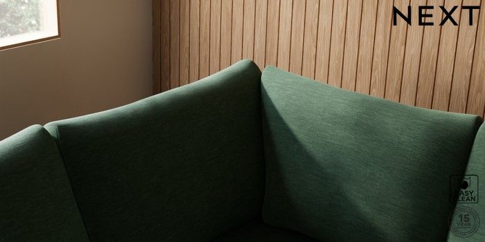 7.2.10 Parker Large Corner Sofa - Left Hand Fine Chenille Easy Clean Mid Khaki Green Low Retro Tapered - Light | Made Click here to use our website with more accessibility support, for example screen readers