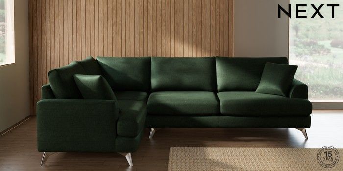 7.2.10 Parker Large Corner Sofa - Left Hand Luxe Chenille Dark Green High Metal - Chrome | Made Click here to use our website with more accessibility support, for example screen readers