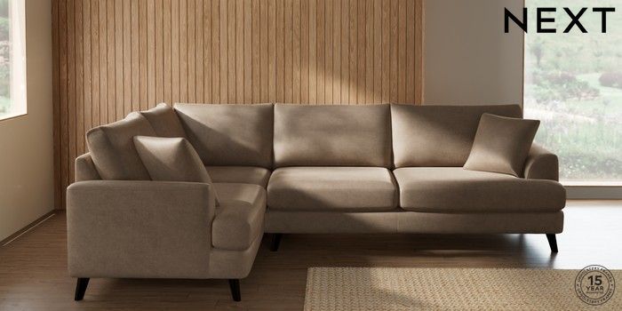 7.2.10 Parker Large Corner Sofa - Left Hand Luxe Chenille Mid Camel Beige Low Retro Tapered - Dark | Made Click here to use our website with more accessibility support, for example screen readers