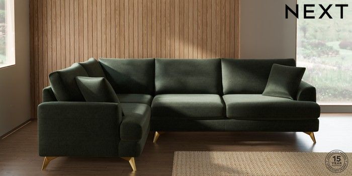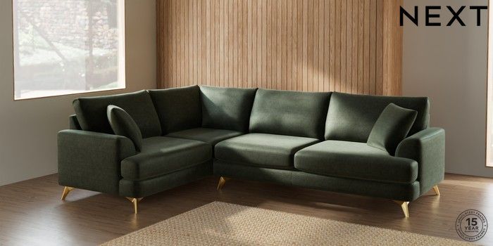 7.2.10 Parker Large Corner Sofa - Left Hand Luxe Chenille Mid Green High Metal - Brass | Made Click here to use our website with more accessibility support, for example screen readers