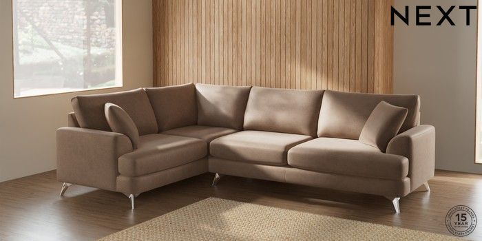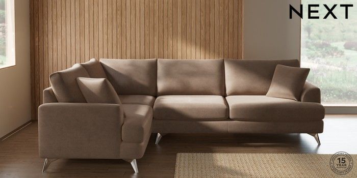 7.2.10 Parker Large Corner Sofa - Left Hand Luxe Chenille Mid Natural High Metal - Chrome | Made Click here to use our website with more accessibility support, for example screen readers