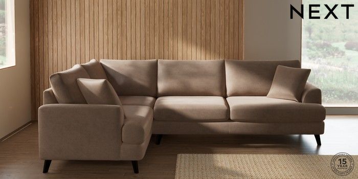 7.2.10 Parker Large Corner Sofa - Left Hand Luxe Chenille Mid Natural Low Retro Tapered - Dark | Made Click here to use our website with more accessibility support, for example screen readers
