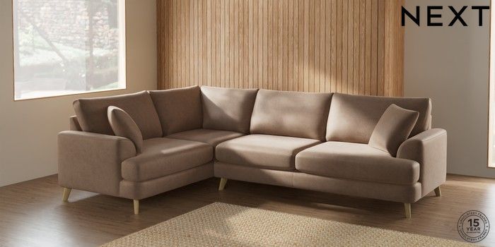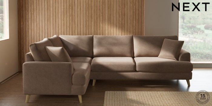 7.2.10 Parker Large Corner Sofa - Left Hand Luxe Chenille Mid Natural Low Retro Tapered - Light | Made Click here to use our website with more accessibility support, for example screen readers