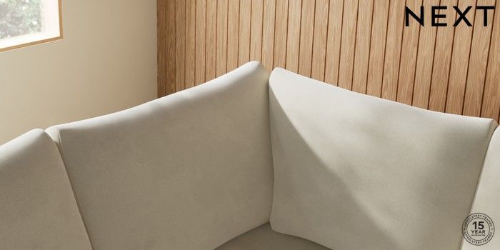 7.2.10 Parker Large Corner Sofa - Left Hand Luxe Chenille Oyster Low Retro Tapered - Light | Made Click here to use our website with more accessibility support, for example screen readers
