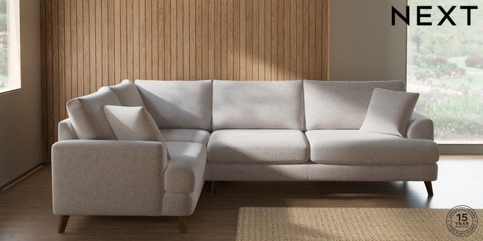 7.2.10 Parker Large Corner Sofa - Left Hand Multi Weave Oyster Low Retro Tapered - Mid | Made Click here to use our website with more accessibility support, for example screen readers