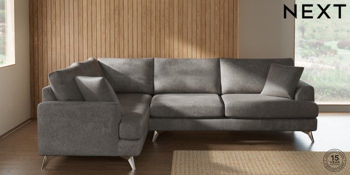 7.2.10 Parker Large Corner Sofa - Left Hand Plush Chenille Light Grey High Metal - Chrome | Made Click here to use our website with more accessibility support, for example screen readers