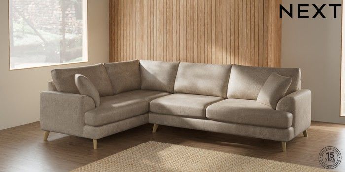 7.2.10 Parker Large Corner Sofa - Left Hand Plush Chenille Light Natural Low Retro Tapered - Light | Made Click here to use our website with more accessibility support, for example screen readers