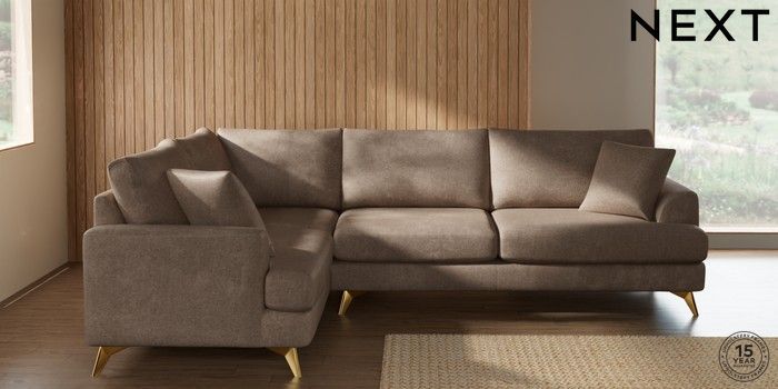 7.2.10 Parker Large Corner Sofa - Left Hand Plush Chenille Mid Natural High Metal - Brass | Made Click here to use our website with more accessibility support, for example screen readers
