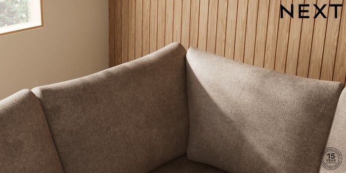 7.2.10 Parker Large Corner Sofa - Left Hand Plush Chenille Mid Natural Low Retro Tapered - Light | Made Click here to use our website with more accessibility support, for example screen readers