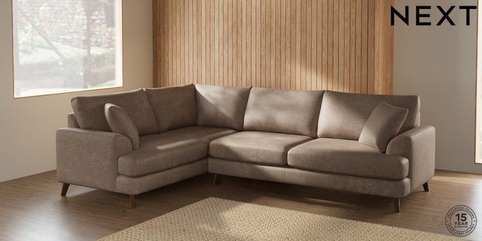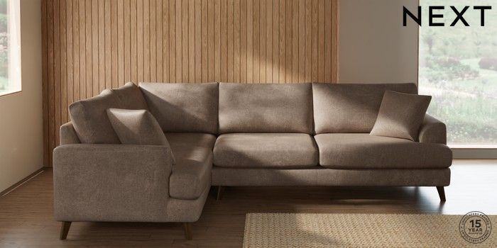 7.2.10 Parker Large Corner Sofa - Left Hand Plush Chenille Mid Natural Low Retro Tapered - Mid | Made Click here to use our website with more accessibility support, for example screen readers