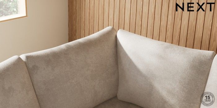 7.2.10 Parker Large Corner Sofa - Left Hand Plush Chenille Oyster Low Retro Tapered - Dark | Made Click here to use our website with more accessibility support, for example screen readers