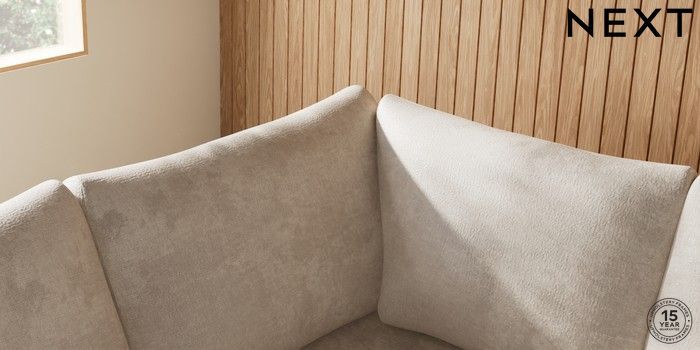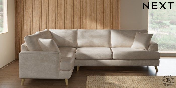 7.2.10 Parker Large Corner Sofa - Left Hand Plush Chenille Oyster Low Retro Tapered - Light | Made Click here to use our website with more accessibility support, for example screen readers