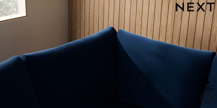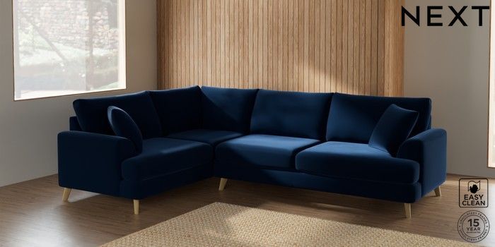 7.2.10 Parker Large Corner Sofa - Left Hand Plush Velvet Easy Clean Navy Blue Low Retro Tapered - Light | Made Click here to use our website with more accessibility support, for example screen readers