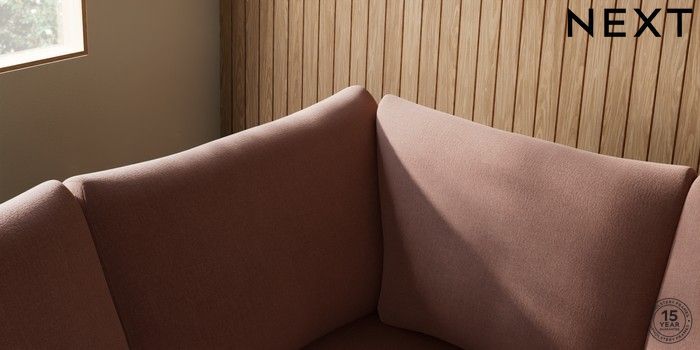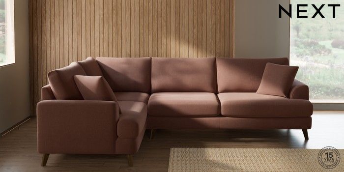 7.2.10 Parker Large Corner Sofa - Left Hand Relaxed Linen Look Light Rust Brown Low Retro Tapered - Mid | Made Click here to use our website with more accessibility support, for example screen readers