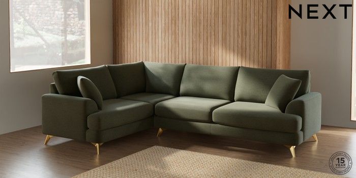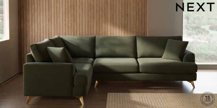 7.2.10 Parker Large Corner Sofa - Left Hand Ripple Chenille Mid Moss Green High Metal - Brass | Made Click here to use our website with more accessibility support, for example screen readers
