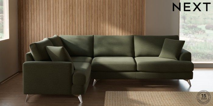 7.2.10 Parker Large Corner Sofa - Left Hand Ripple Chenille Mid Moss Green High Metal - Chrome | Made Click here to use our website with more accessibility support, for example screen readers