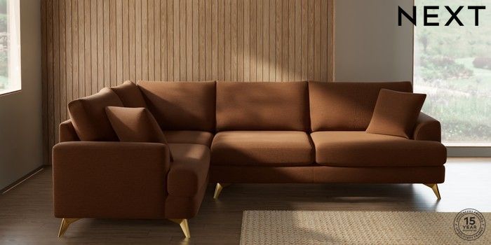 7.2.10 Parker Large Corner Sofa - Left Hand Ripple Chenille Mid Rust Brown High Metal - Brass | Made Click here to use our website with more accessibility support, for example screen readers
