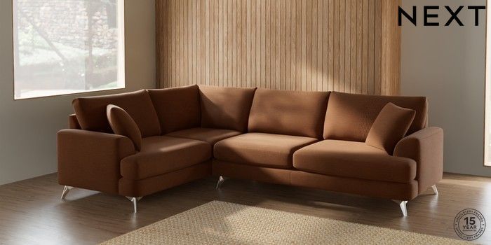 7.2.10 Parker Large Corner Sofa - Left Hand Ripple Chenille Mid Rust Brown High Metal - Chrome | Made Click here to use our website with more accessibility support, for example screen readers