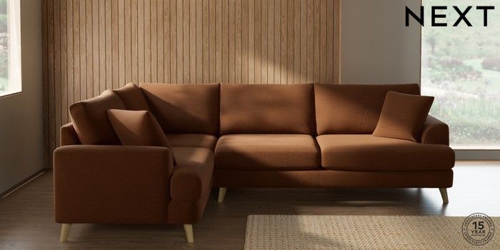 7.2.10 Parker Large Corner Sofa - Left Hand Ripple Chenille Mid Rust Brown Low Retro Tapered - Light | Made Click here to use our website with more accessibility support, for example screen readers