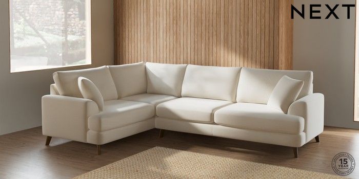 7.2.10 Parker Large Corner Sofa - Left Hand Ripple Chenille Oyster Low Retro Tapered - Mid | Made Click here to use our website with more accessibility support, for example screen readers