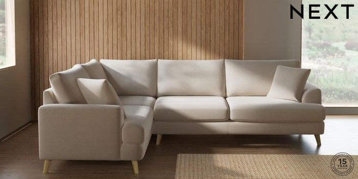 7.2.10 Parker Large Corner Sofa - Left Hand Studio Chenille Oyster Low Retro Tapered - Light | Made Click here to use our website with more accessibility support, for example screen readers