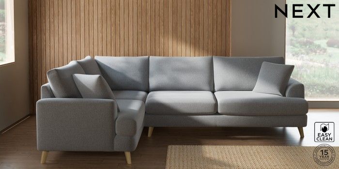 7.2.10 Parker Large Corner Sofa - Left Hand Tweedy Blend Easy Clean Light Silver Grey Low Retro Tapered - Light | Made Click here to use our website with more accessibility support, for example screen readers