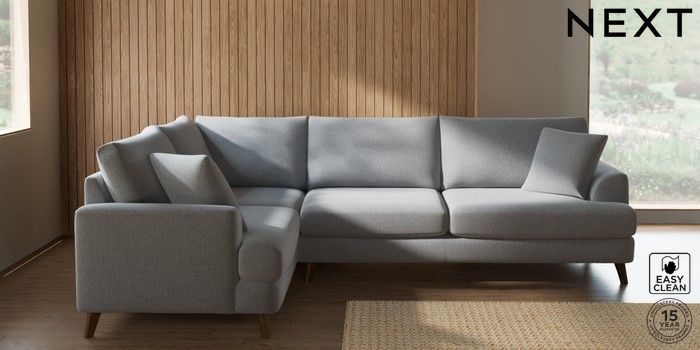 7.2.10 Parker Large Corner Sofa - Left Hand Tweedy Blend Easy Clean Light Silver Grey Low Retro Tapered - Mid | Made Click here to use our website with more accessibility support, for example screen readers