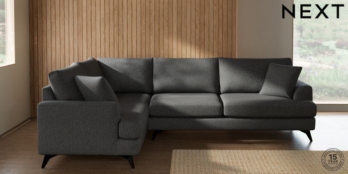 7.2.10 Parker Large Corner Sofa - Left Hand Tweedy Chenille Dark Grey High Metal - Black | Made Click here to use our website with more accessibility support, for example screen readers