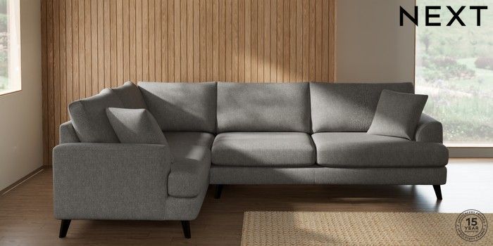 7.2.10 Parker Large Corner Sofa - Left Hand Tweedy Chenille Mid Grey Low Retro Tapered - Dark | Made Click here to use our website with more accessibility support, for example screen readers