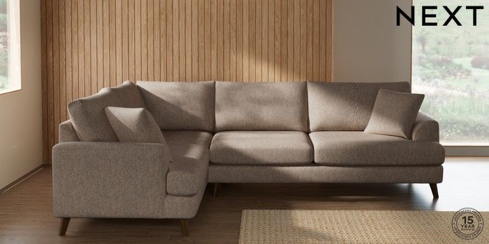 7.2.10 Parker Large Corner Sofa - Left Hand Tweedy Chenille Mid Natural Low Retro Tapered - Mid | Made Click here to use our website with more accessibility support, for example screen readers