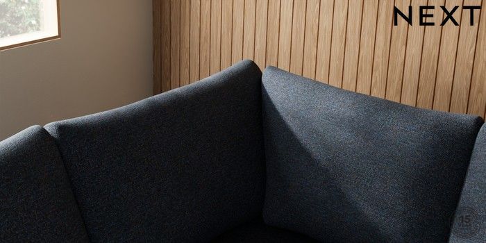7.2.10 Parker Large Corner Sofa - Left Hand Tweedy Chenille Navy Blue Low Retro Tapered - Light | Made Click here to use our website with more accessibility support, for example screen readers