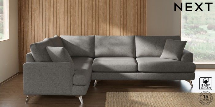 7.2.10 Parker Large Corner Sofa - Left Hand Woven Chenille Easy Clean Light Grey High Metal - Chrome | Made Click here to use our website with more accessibility support, for example screen readers