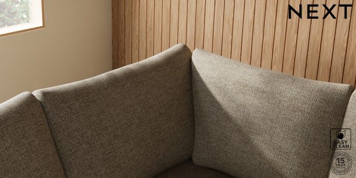 7.2.10 Parker Large Corner Sofa - Left Hand Woven Chenille Easy Clean Mid Natural Low Retro Tapered - Light | Made Click here to use our website with more accessibility support, for example screen readers