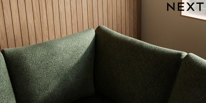 7.2.10 Parker Large Corner Sofa - Right Hand Boucle Chenille Dark Moss Green Low Retro Tapered - Light | Made Click here to use our website with more accessibility support, for example screen readers