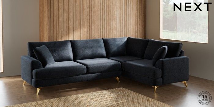 7.2.10 Parker Large Corner Sofa - Right Hand Boucle Chenille Dark Slate Blue High Metal - Brass | Made Click here to use our website with more accessibility support, for example screen readers