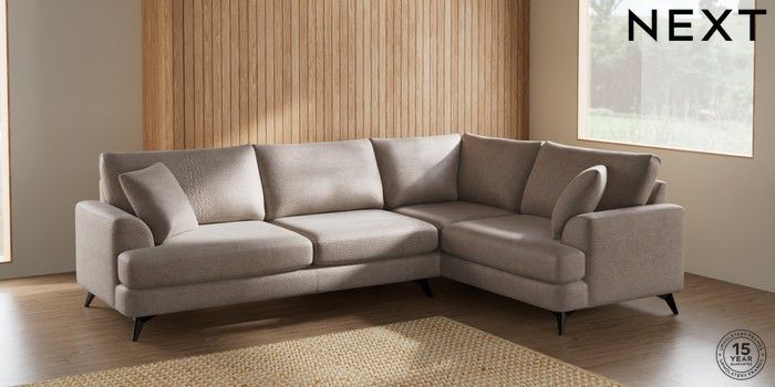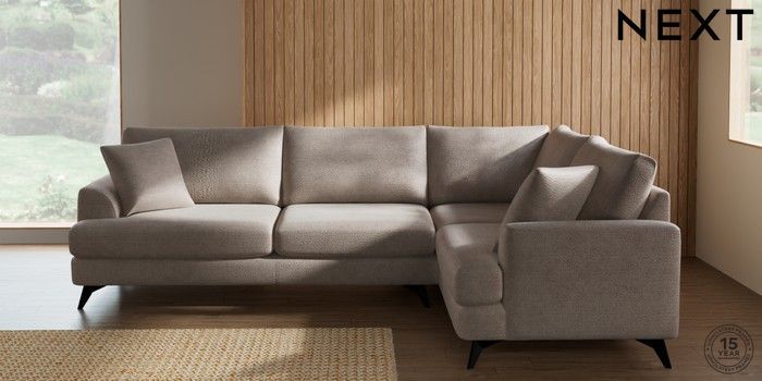 7.2.10 Parker Large Corner Sofa - Right Hand Boucle Chenille Light Natural High Metal - Black | Made Click here to use our website with more accessibility support, for example screen readers