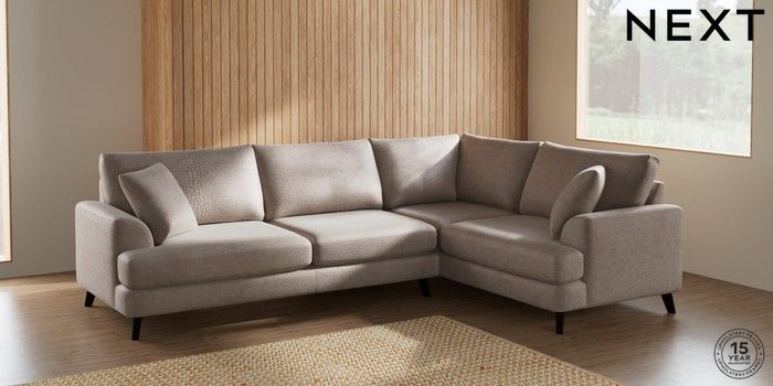 7.2.10 Parker Large Corner Sofa - Right Hand Boucle Chenille Light Natural Low Retro Tapered - Dark | Made Click here to use our website with more accessibility support, for example screen readers