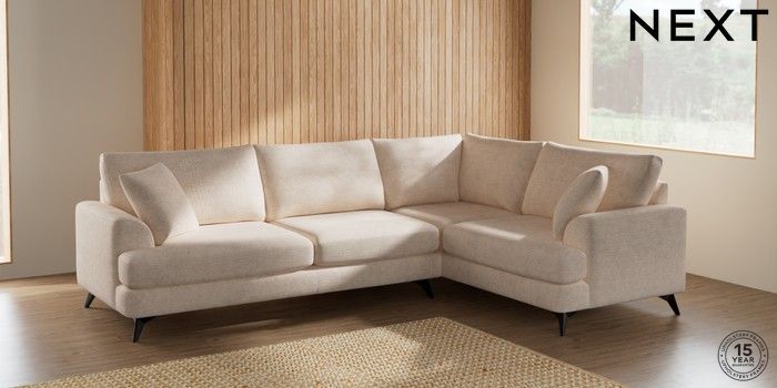 7.2.10 Parker Large Corner Sofa - Right Hand Boucle Chenille Oyster High Metal - Black | Made Click here to use our website with more accessibility support, for example screen readers