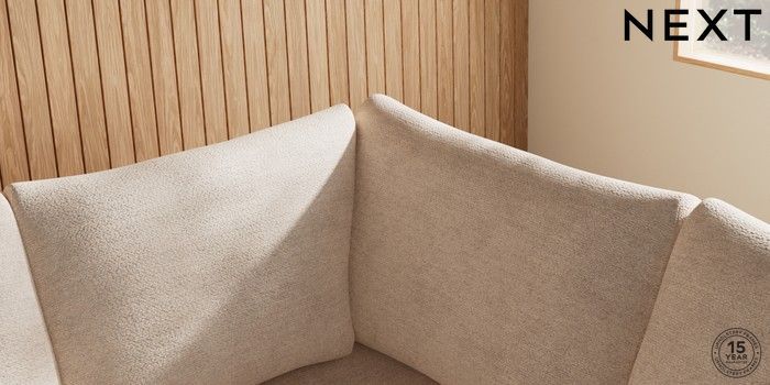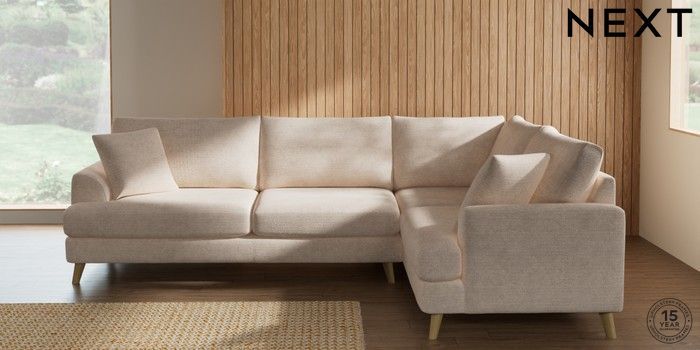 7.2.10 Parker Large Corner Sofa - Right Hand Boucle Chenille Oyster Low Retro Tapered - Light | Made Click here to use our website with more accessibility support, for example screen readers