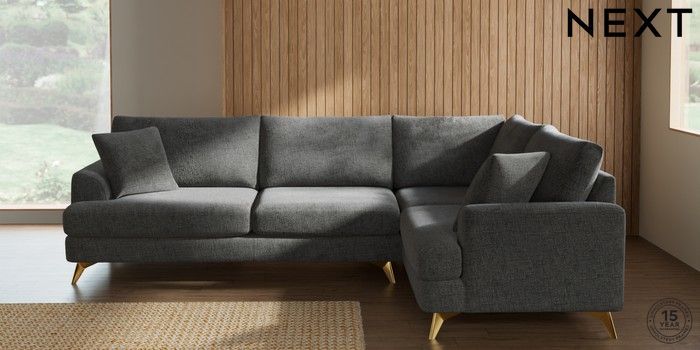 7.2.10 Parker Large Corner Sofa - Right Hand Chunky Chenille Dark Grey High Metal - Brass | Made Click here to use our website with more accessibility support, for example screen readers
