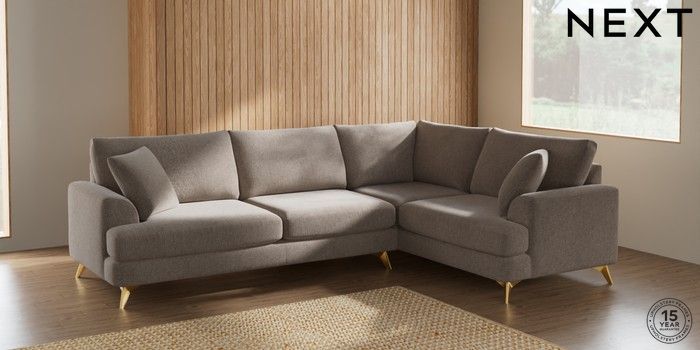 7.2.10 Parker Large Corner Sofa - Right Hand Chunky Chenille Light Dove High Metal - Brass | Made Click here to use our website with more accessibility support, for example screen readers