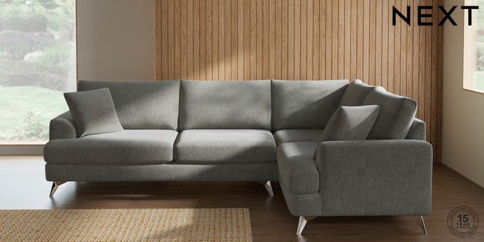 7.2.10 Parker Large Corner Sofa - Right Hand Chunky Chenille Light Grey High Metal - Chrome | Made Click here to use our website with more accessibility support, for example screen readers