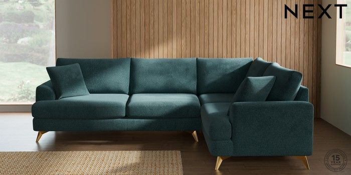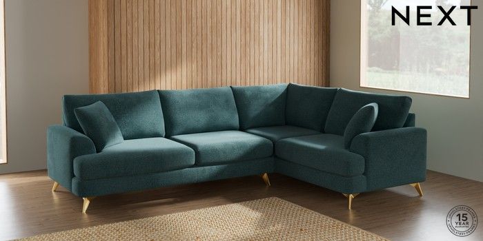 7.2.10 Parker Large Corner Sofa - Right Hand Chunky Chenille Mid Teal Green High Metal - Brass | Made Click here to use our website with more accessibility support, for example screen readers
