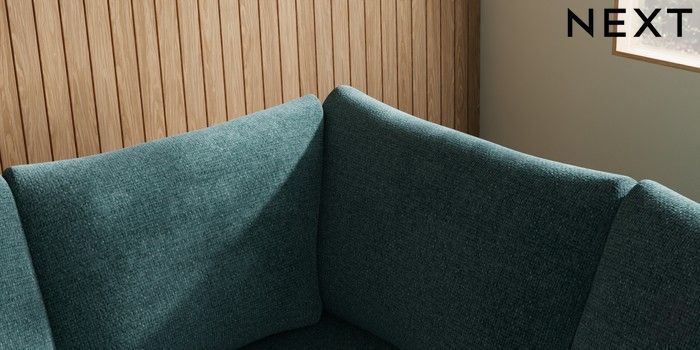7.2.10 Parker Large Corner Sofa - Right Hand Chunky Chenille Mid Teal Green Low Retro Tapered - Light | Made Click here to use our website with more accessibility support, for example screen readers