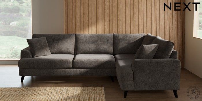 7.2.10 Parker Large Corner Sofa - Right Hand Chunky Chenille Mink Brown Low Retro Tapered - Dark | Made Click here to use our website with more accessibility support, for example screen readers