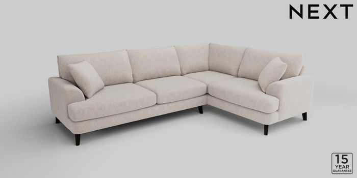 7.2.10 Parker Large Corner Sofa - Right Hand Chunky Chenille Oyster Low Retro Tapered - Dark | Made Click here to use our website with more accessibility support, for example screen readers