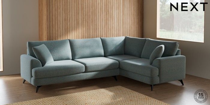 7.2.10 Parker Large Corner Sofa - Right Hand Chunky Marl Mid Blue High Metal - Black | Made Click here to use our website with more accessibility support, for example screen readers